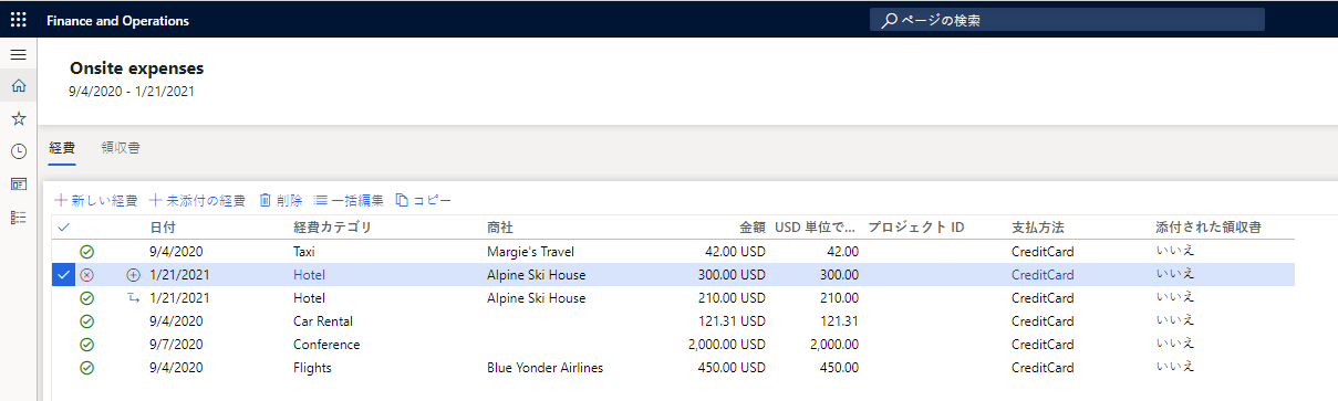 このシナリオでは、プロジェクトに対する単純な経費のみを記録できます。 プロジェクトに対する経費を記録すると、プロジェクト承認者が経費を確認および承認します。