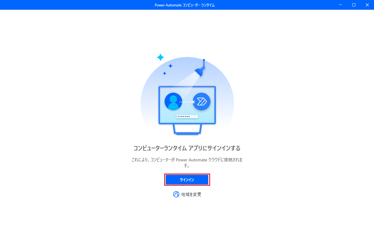 Power Automate コンピューター ランタイム アプリが開きます。 求められた場合は、サインインします。