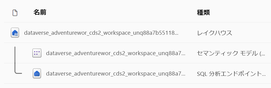 リンクが確立されると、提供したワークスペースにレイクハウスが作成されます。 レイクハウスの名前は、係数を組み合わせて生成されます。 レイクハウスから次の 2 つのエンドポイントが生成されます。