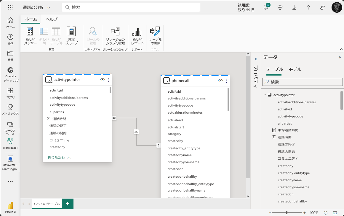 レイクハウスでテーブルを使用して、独自のモデルを作成できます。 たとえば、コール センターでの電話分析など、必要なテーブルのみを使用して、特定のユース ケースに対して新しいモデルを作成できます。 レイクハウスから新しいセマンティック モデルを作成するには、コマンド バーで新しいセマンティック モデルを選択します。