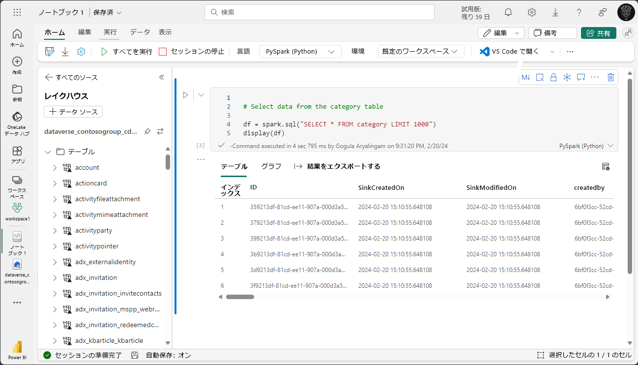 ノートブックでは、データを処理および変換する複雑なコードを記述できます。 たとえば、このオプションを使用すると、データ ウェアハウスの変換ロジックを作成できます。 Fabric を使用すると、Python、Scala、SQL、R などの複数の言語を使ってノートブックでコードを記述できます。レイクハウスからアクセスしてノートブックを作成するには、コマンド バーでノートブックを開く>新しいノートブックを選択します。