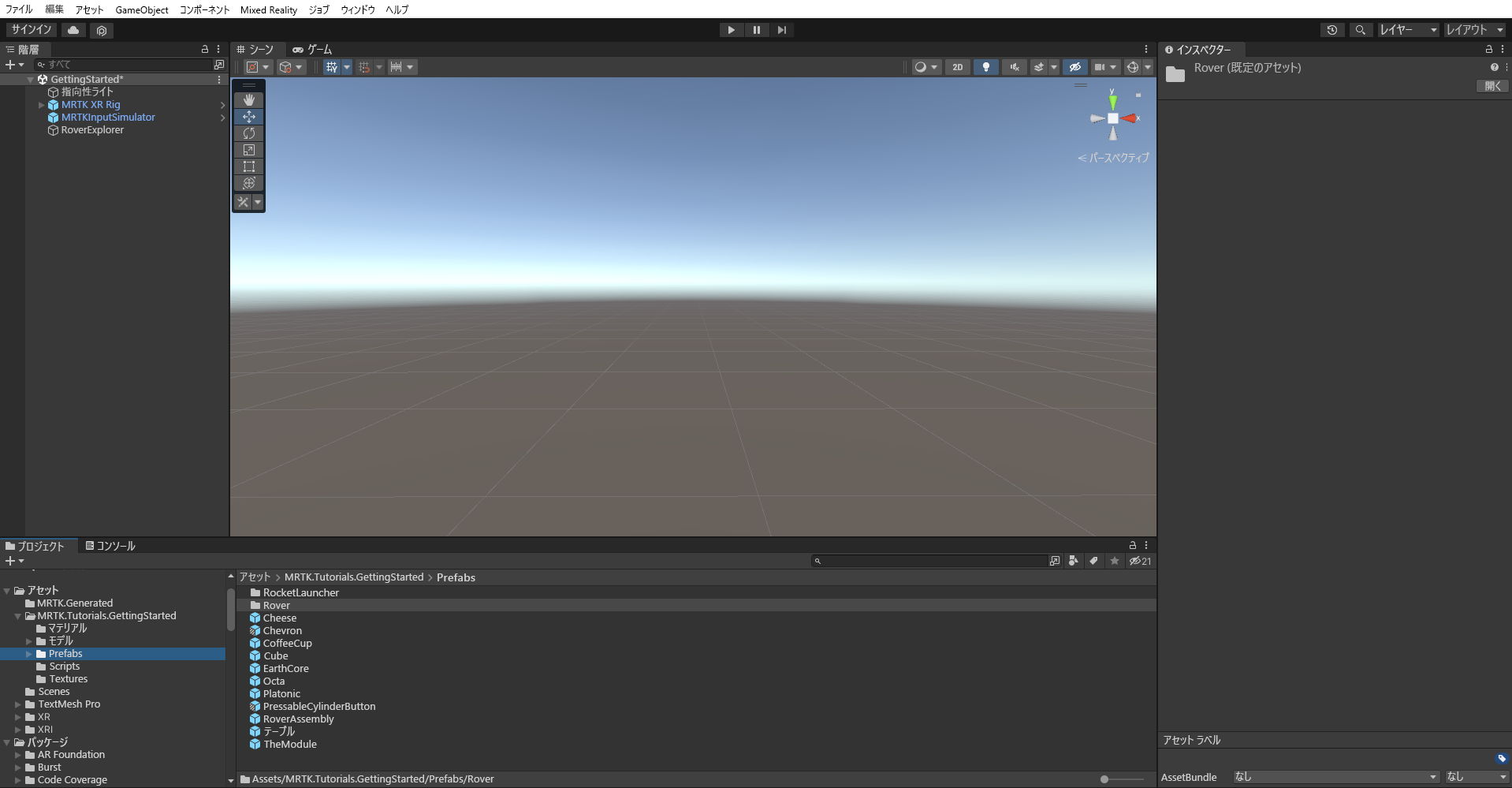 [ プロジェクト ] ウィンドウで、 Assets>MRTK に移動します。Tutorials.GettingStarted>Prefabs フォルダー。