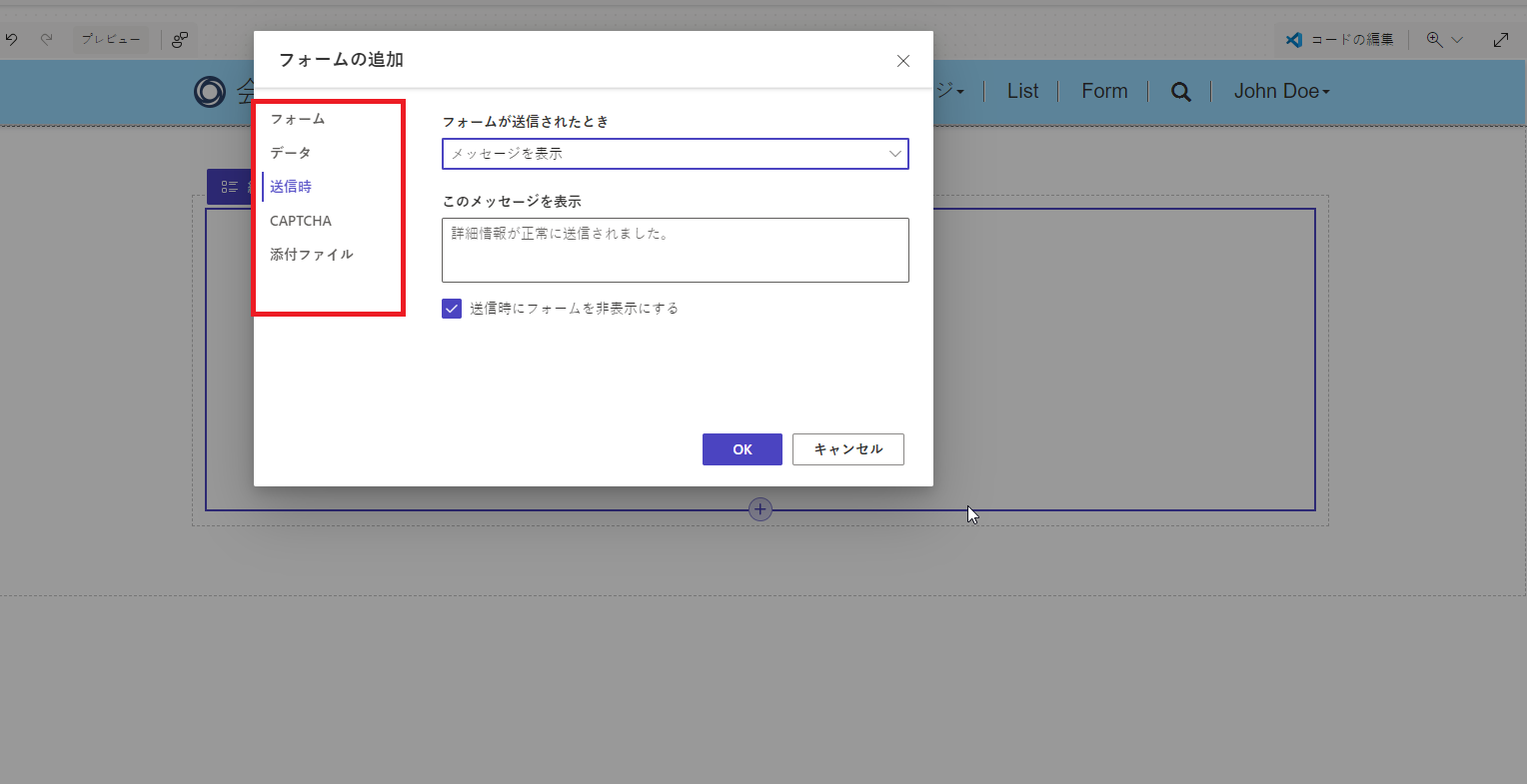 Web サイトへのフォームの追加