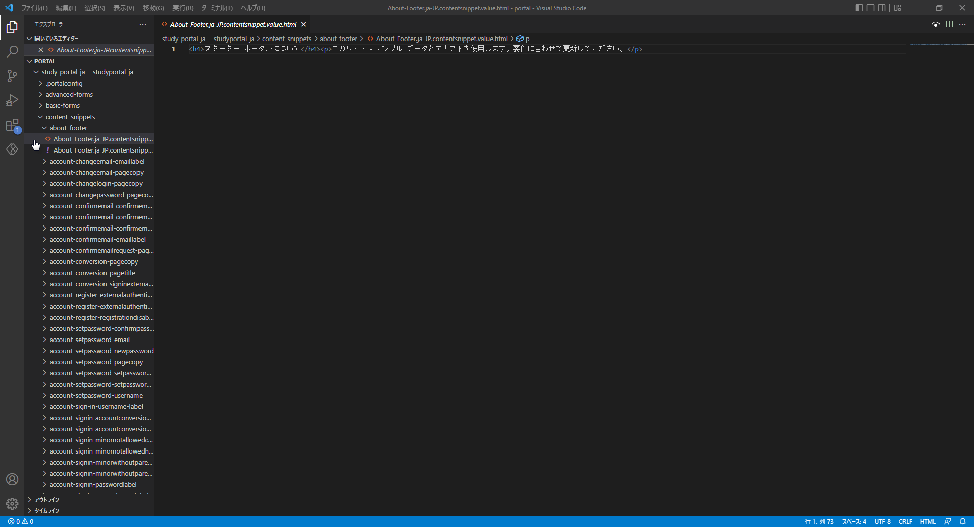 code portal」と入力し、ダウンロードしたデータを含むフォルダーをエディター ウィンドウで開きます。Web サイトのソースをエディター ウィンドウで参照します。