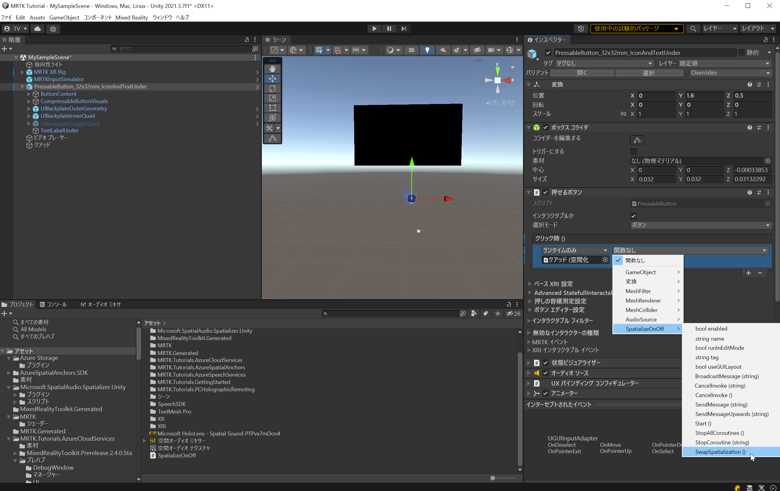 [ 関数なし ] ドロップダウンを選択し、[ SpatializeOnOff>SwapSpatialization () を選択して空間オーディオのオンとオフを切り替えます。