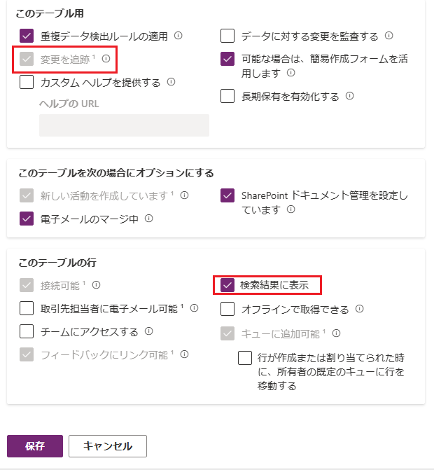 変更を追跡 チェックボックスと 検索結果に表示 チェックボックスをオンにします。