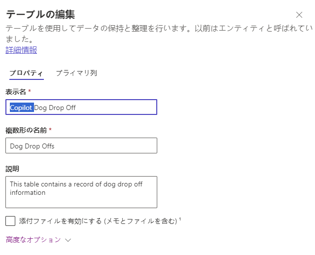 この方法でフォームを作成すると、Copilot は、新しいフォームで収集されたデータをサポートするために、新しい Microsoft Dataverse テーブルも作成します。 この新しいテーブルは、Microsoft Power Apps Maker Portal を使用してさらにカスタマイズおよび自動化する場合に使用できます。 この方法で作成された新しいテーブルには、表のラベルに "Copilot" という単語の接頭辞が付きます。 単なるラベルであり、基になるスキーマではないので、必要に応じてラベルを編集してこの接頭語を削除できます。