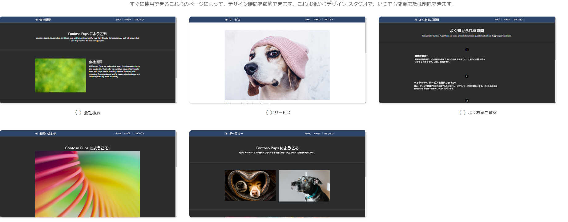 私の犬の保育園 Contoso Pups には、新しい犬を受け入れるための Web サイトが必要です。