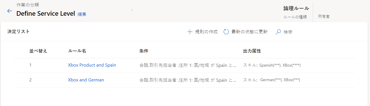 さまざまシナリオをサポートし、異なるスキル セットを持つ担当者がいる組織では、1 つの作業ストリームに複数のルール品目を定義する場合があります。 会話には、条件を満たすあらゆる添付ルールからのスキルが添付されます。 品目が適切に割り当てられるように、ルール品目の定義は十分な詳細情報で行うようにしてください。