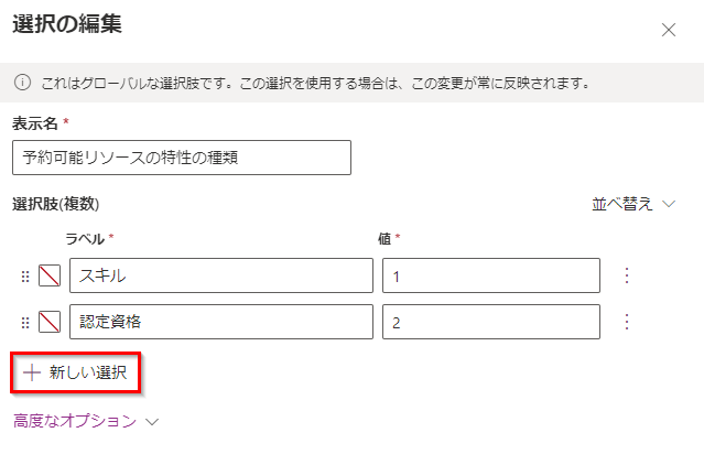 多くの場合、スキルのタイプは既に定義されています。 新しい選択 を選択し、追加するタイプを定義することで、組織のニーズに基づいてさらに多くのスキルのタイプを追加できます。