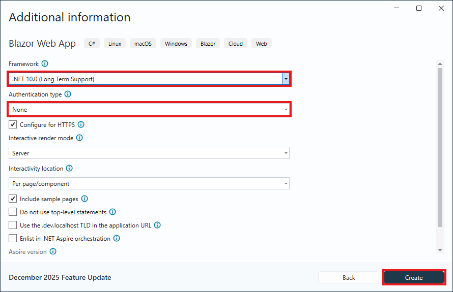 dotnet new blazor -n MyFirstAzureWebApp --framework net10.0
