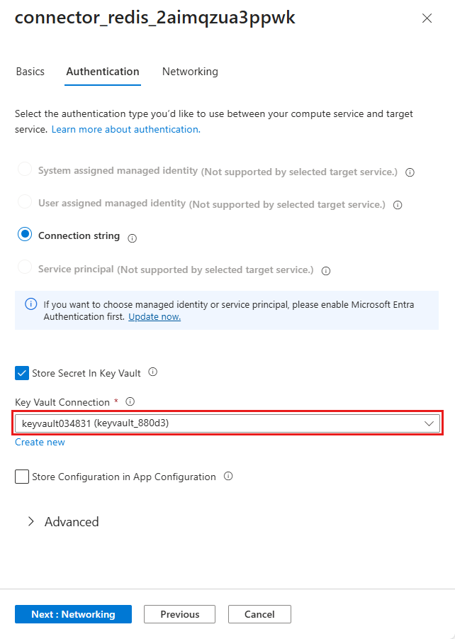 Deployment generated the connectivity variables for you already as app settings. The security best practice is to keep secrets out of App Service completely. Move your secrets to a key vault and change your app setting to Key Vault references with the help of Service Connectors.