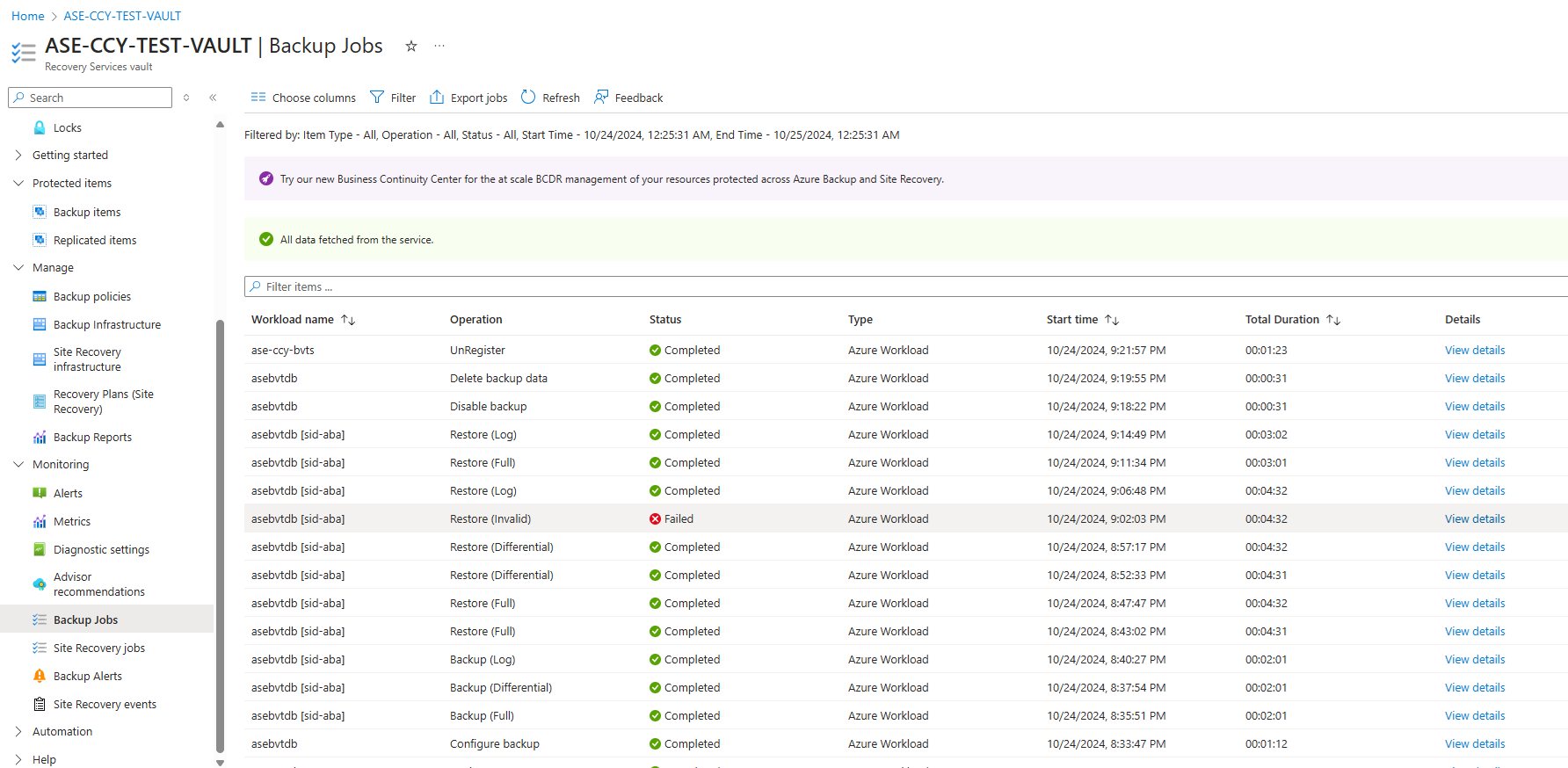 This article describes how to manage the SAP Adaptive Server Enterprise (ASE) (Sybase) databases (running on an Azure virtual machines) using Azure portal. Azure Backup allows you to monitor jobs and alerts, trigger an on-demand backup, edit policies, stop and resume database protection, and unregister a Virtual Machine (VM) from backups.