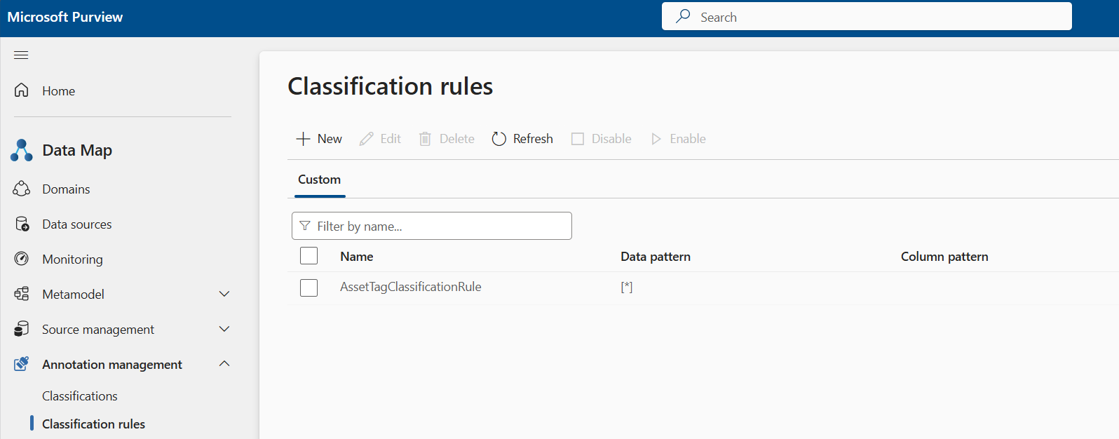 Create a custom classification, if necessary. Select the Custom tab, and then select + New. Learn how to create a custom classification.