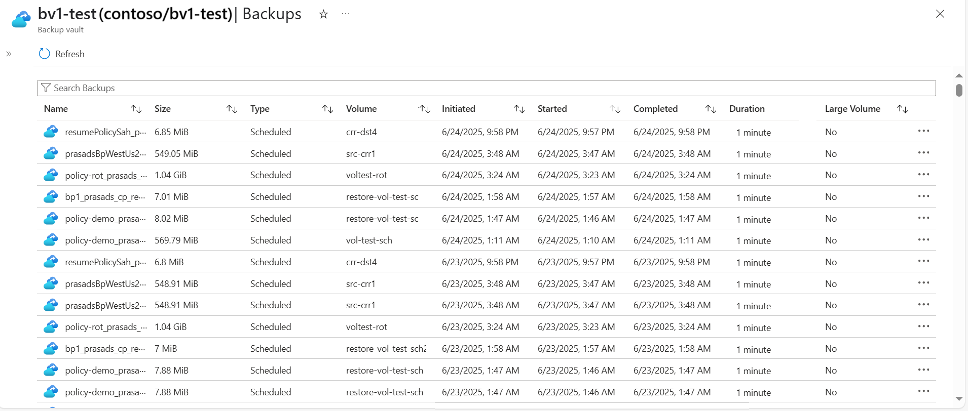 If a volume is deleted, its backups are retained. The backups are listed in the associated backup vault, under the Backups section. This list includes all backups within the backup vault in the region. It can be used to restore a backup to a volume in another NetApp account under the same subscription.