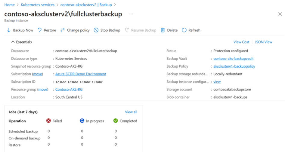 In the Azure portal, go to the AKS cluster that you want to back up.