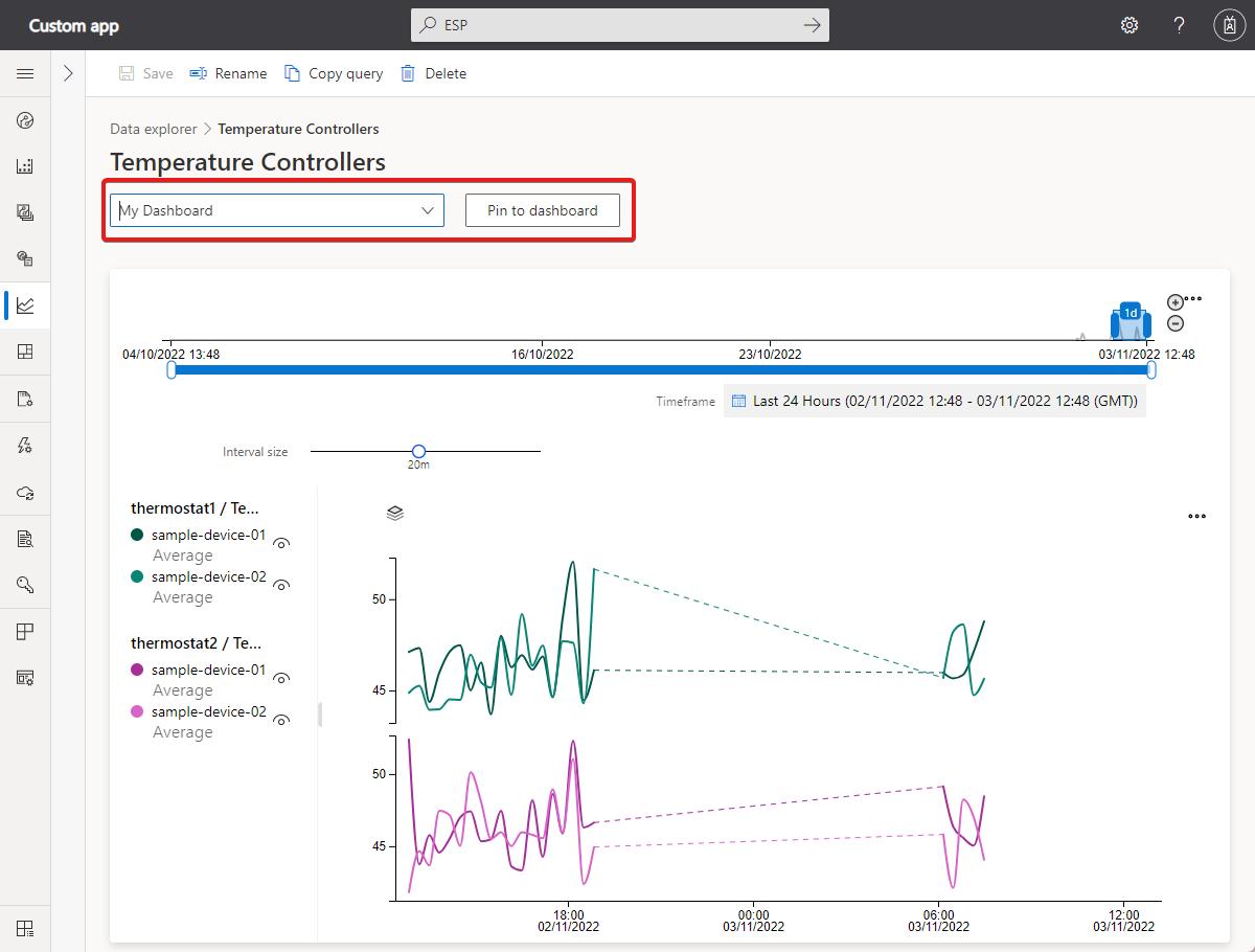 To continuously monitor the data explorer queries, you can pin a query to a dashboard. To pin a query to the dashboard: