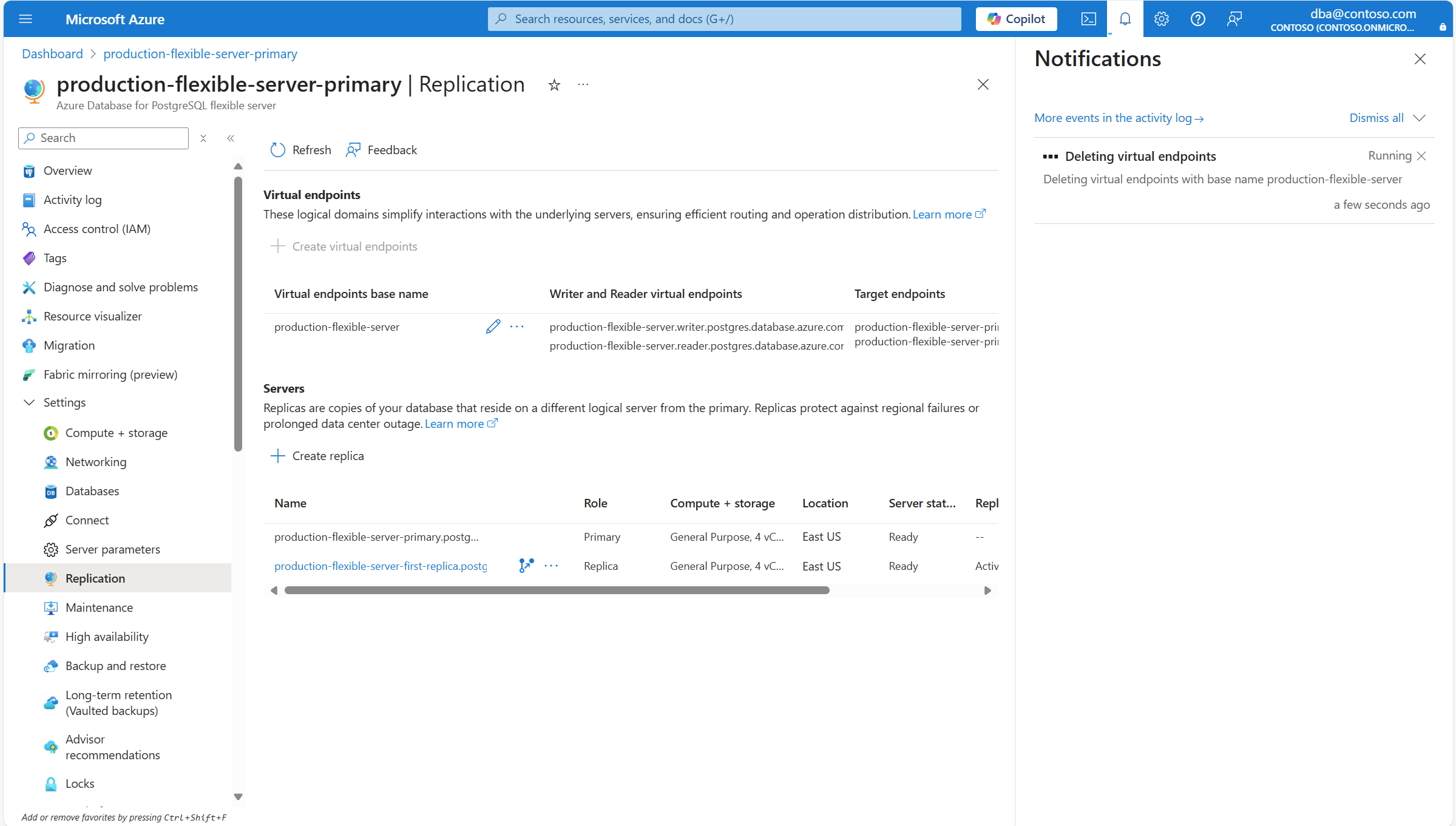 Select the Azure Database for PostgreSQL flexible server instance for which you want to delete its associated virtual endpoints.