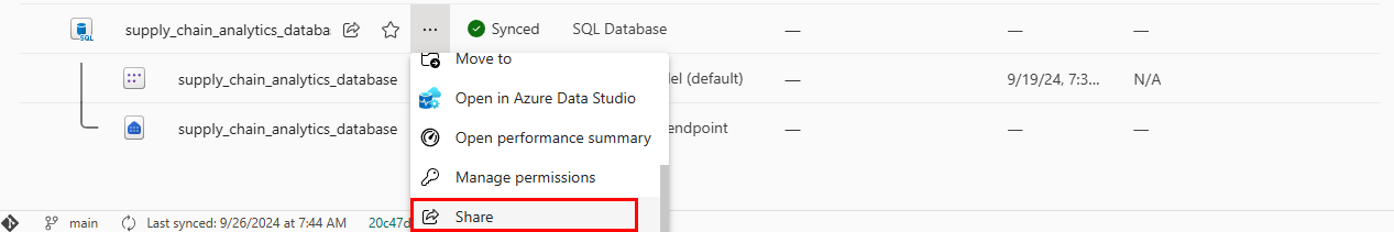 For more information about sharing, see Share your SQL database and manage permissions and Share items in Microsoft Fabric.