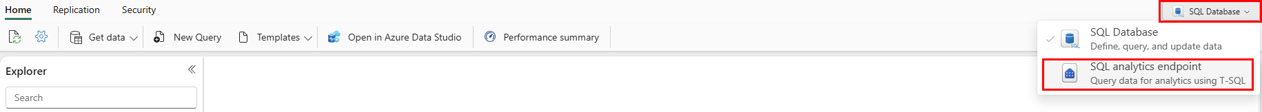 When you open the SQL analytics endpoint of the SQL database, you're brought to a view similar to the SQL database in Fabric view.