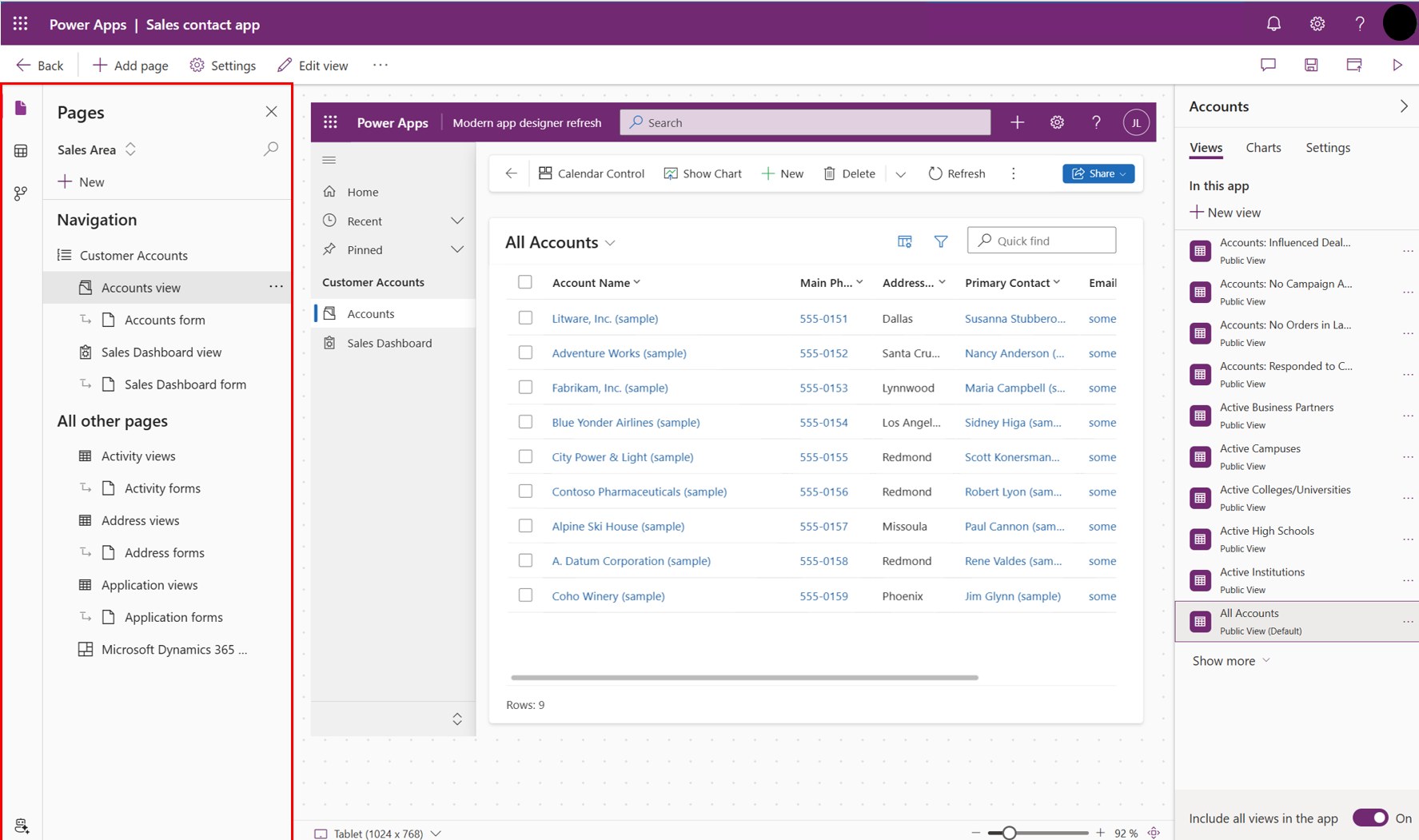 The view designer is displayed where you can edit the table view. More information: Edit public views from a table