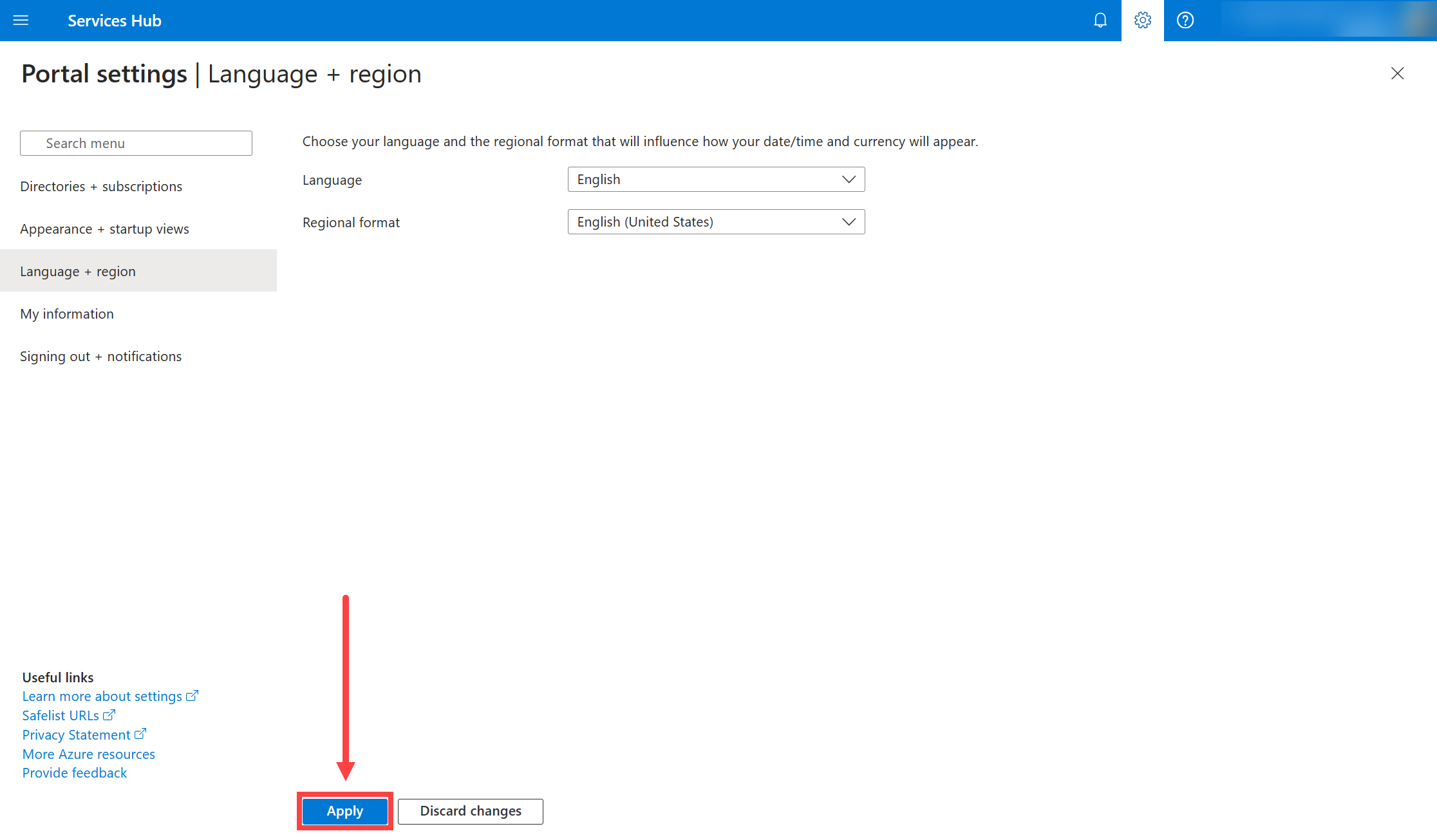 You can view the enhanced self-help support request creation process in your local language (if supported) by navigating to settings and selecting your language and region from the dropdown menus, then going through the steps to open a new support request.