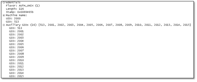 액세스 요청이 이루어지면 패킷의 RPC 부분에 16개의 GID만 전달됩니다.
