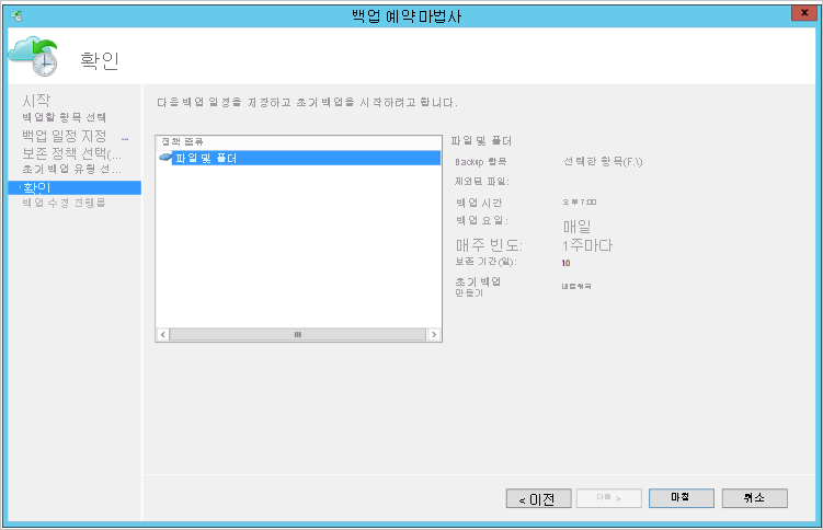 마법사가 백업 일정 생성을 완료하면 닫기를 선택합니다.
