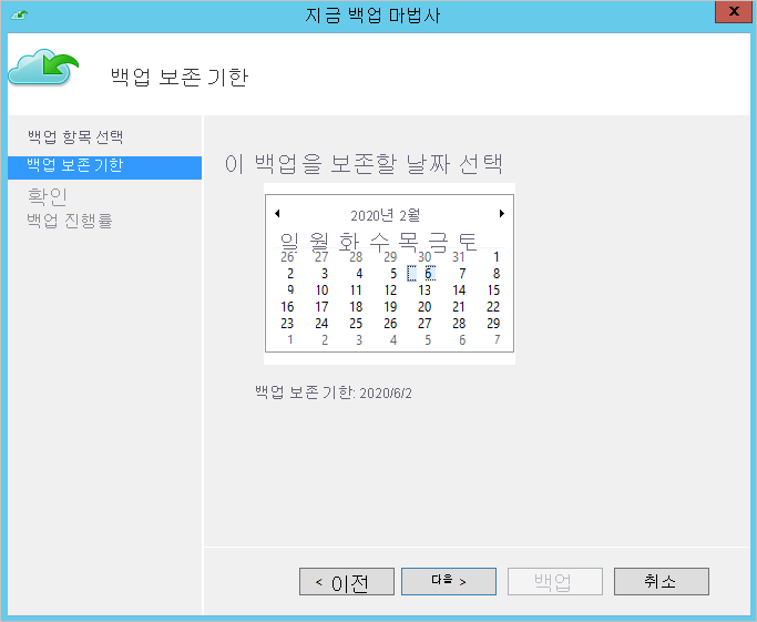 | 백업 일정 옵션 | 데이터 보존 기간 |