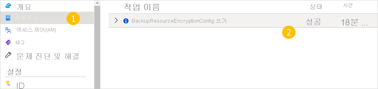 Recovery Services 자격 증명 모음>ID로 이동합니다.
