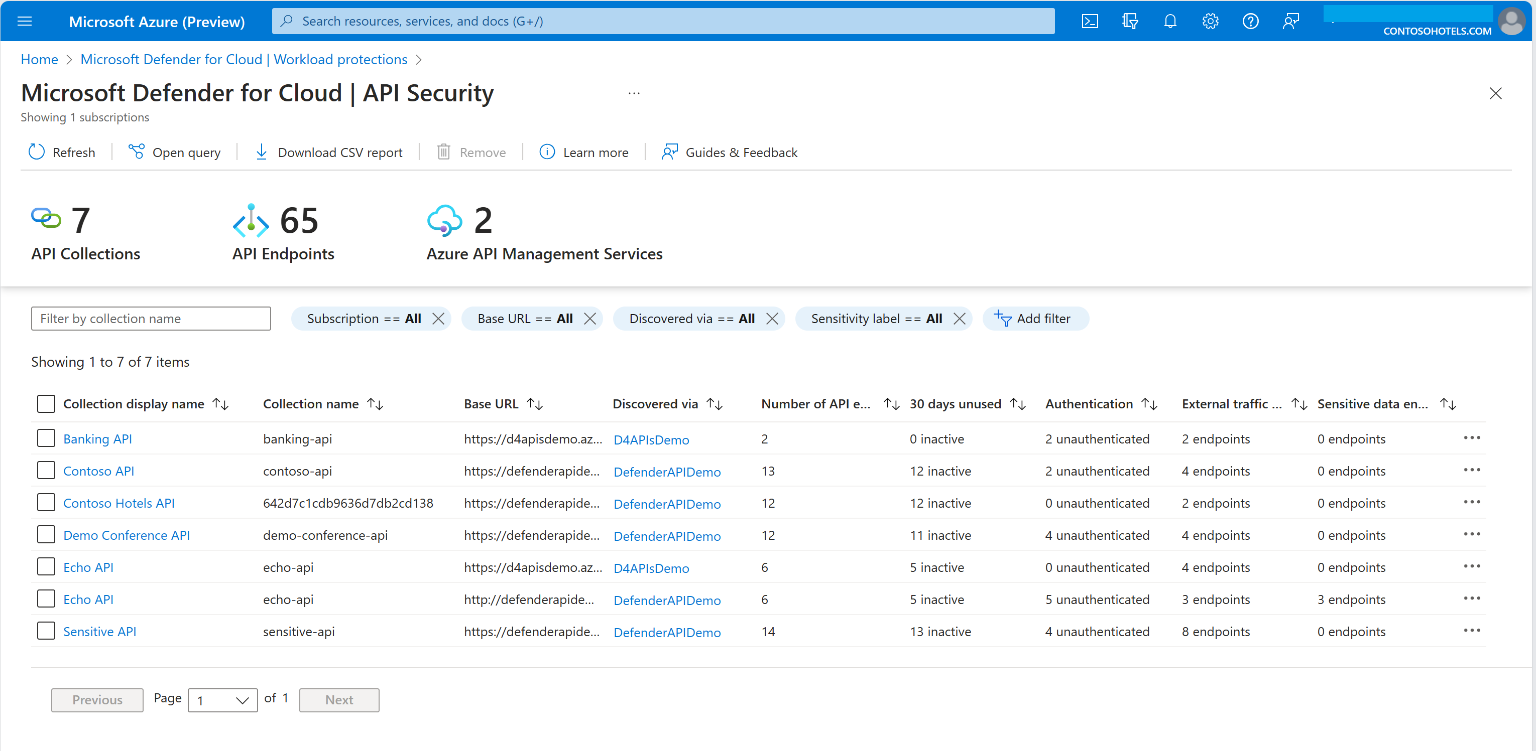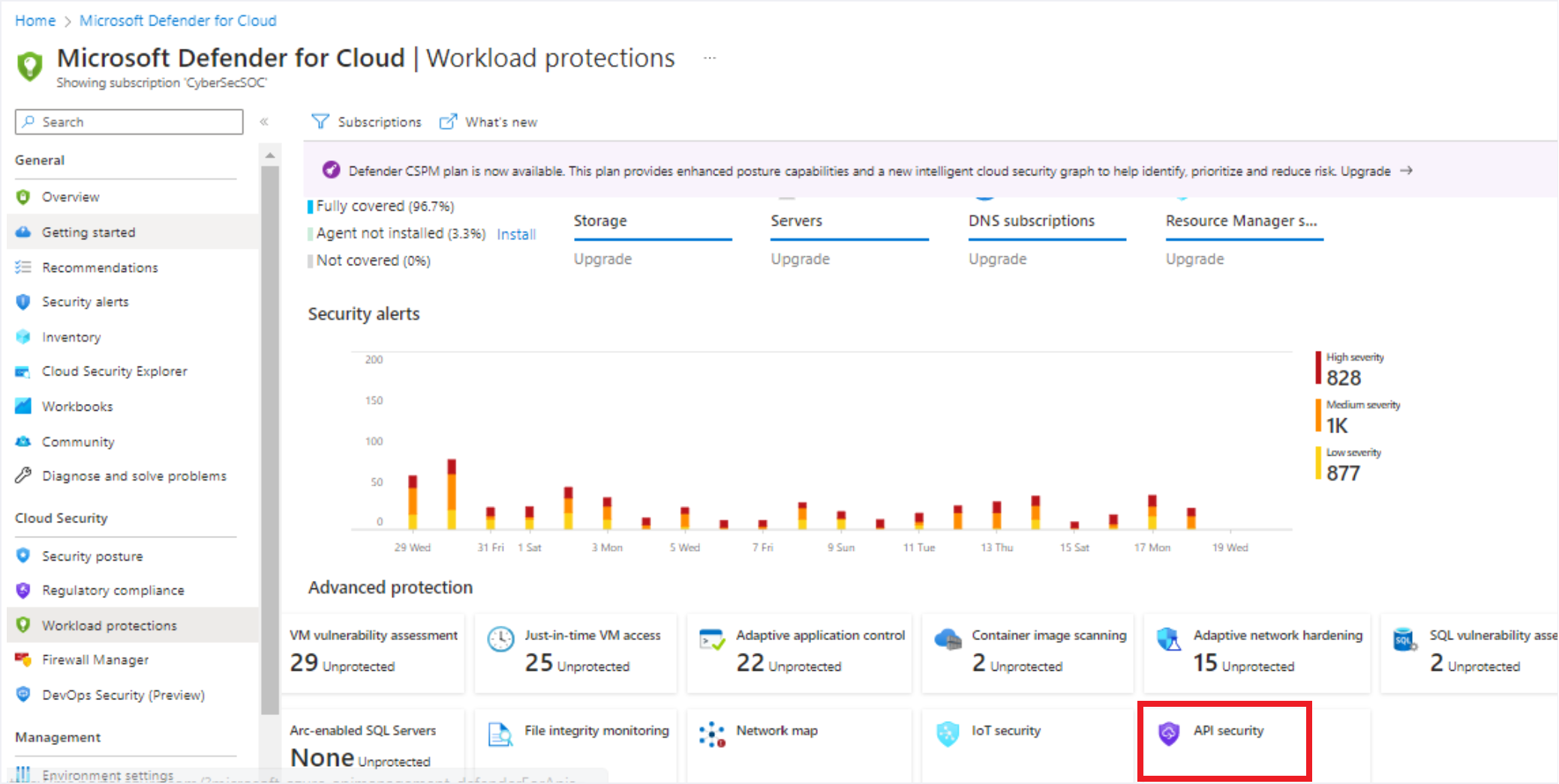 API 리소스를 온보딩한 후 클라우드용 Defender 포털 >워크로드 보호>API 보안에서 해당 상태를 추적할 수 있습니다.