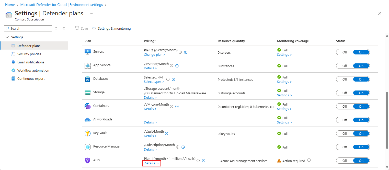 구독 수준에서 Defender for API를 사용하도록 설정합니다.