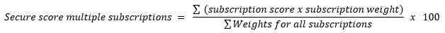 여러 구독 및 커넥터에 대한 보안 점수를 결정하는 수식은 다음과 같습니다.
