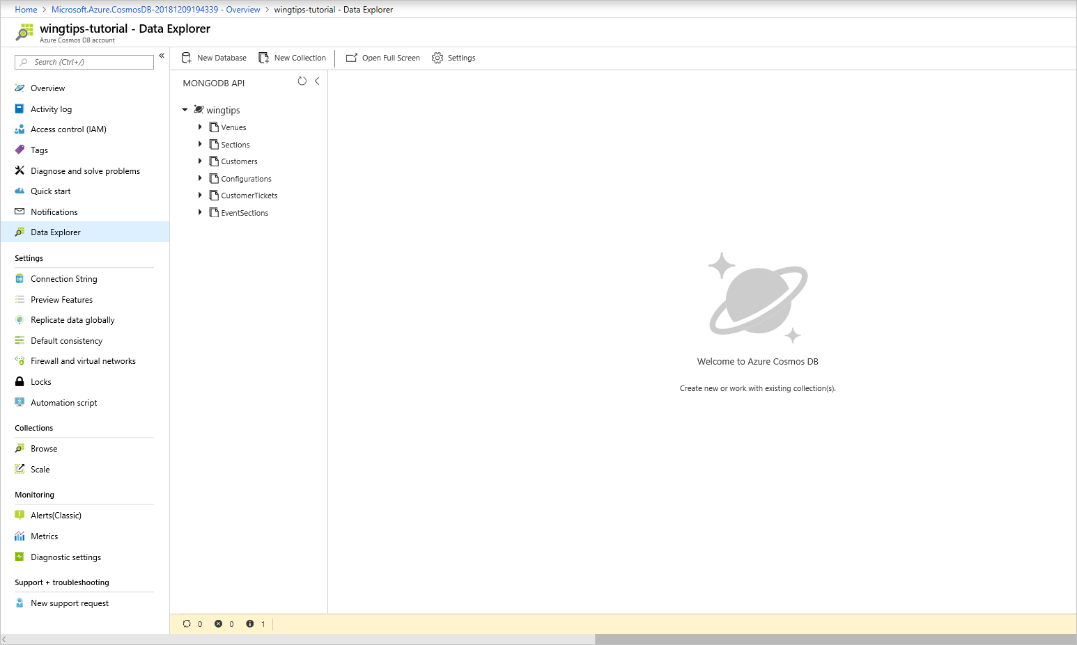 마이그레이션이 완료되면 Azure Cosmos DB 계정을 확인하여 모든 컬렉션이 성공적으로 마이그레이션되었는지 확인할 수 있습니다.