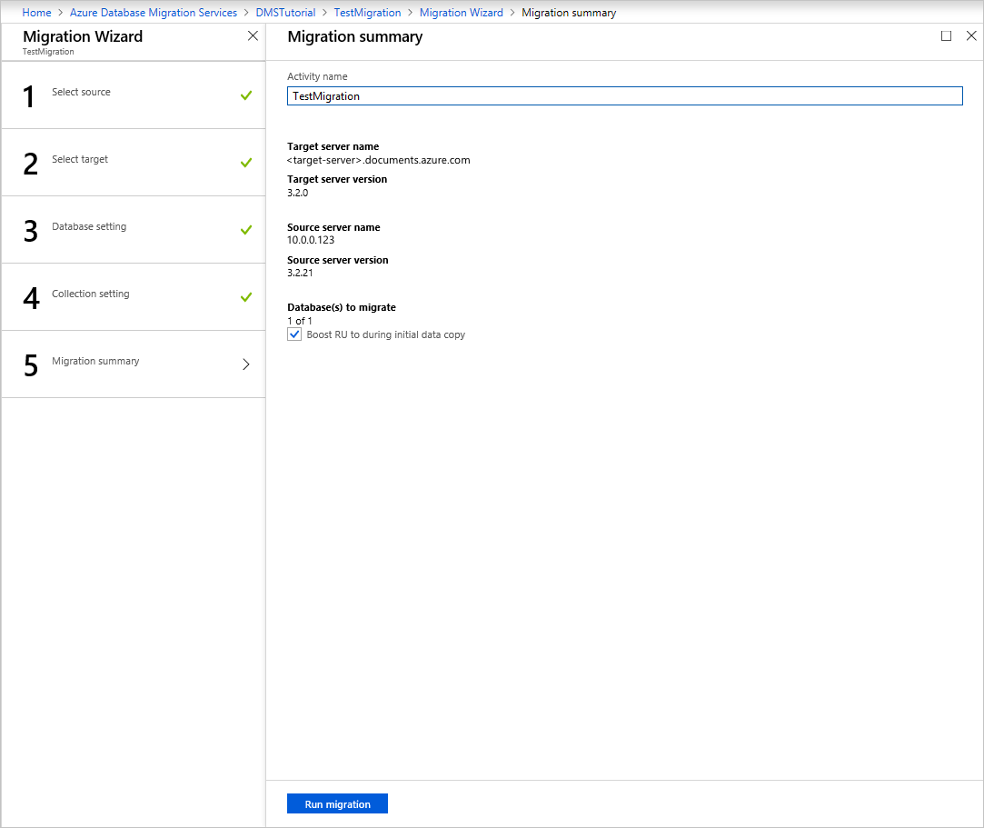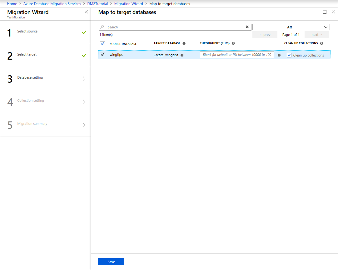 컬렉션에서 사용할 RU의 수를 지정할 수 있습니다. Azure Database Migration Service는 컬렉션 크기에 따라 스마트 기본값을 제공합니다.