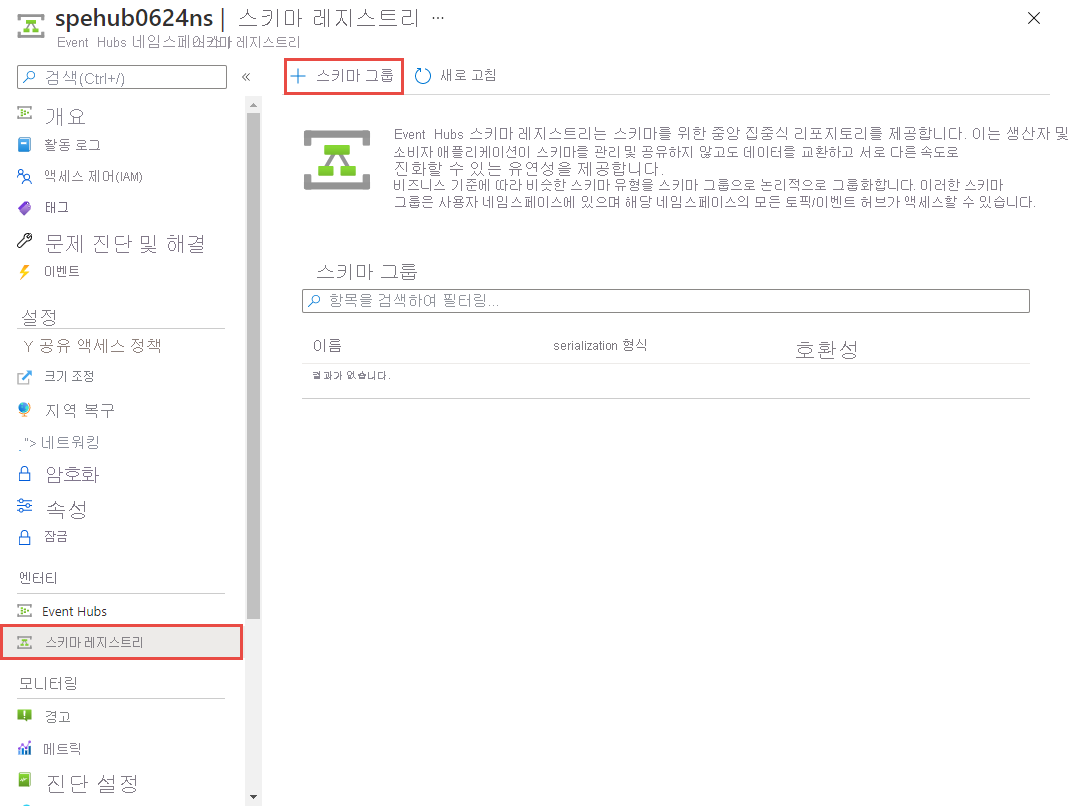 스키마 그룹을 만들려면 + 스키마 그룹을 선택합니다.