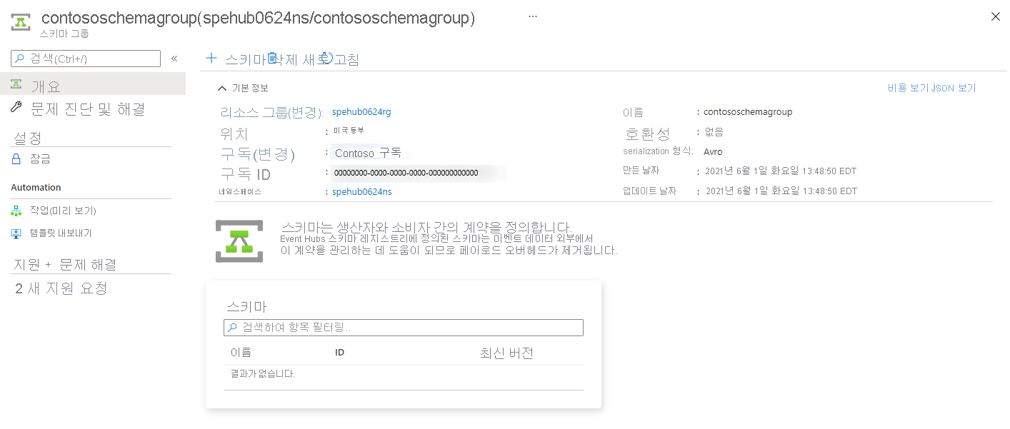 이 섹션에서는 Azure Portal을 사용하여 스키마 그룹에 스키마를 추가합니다.