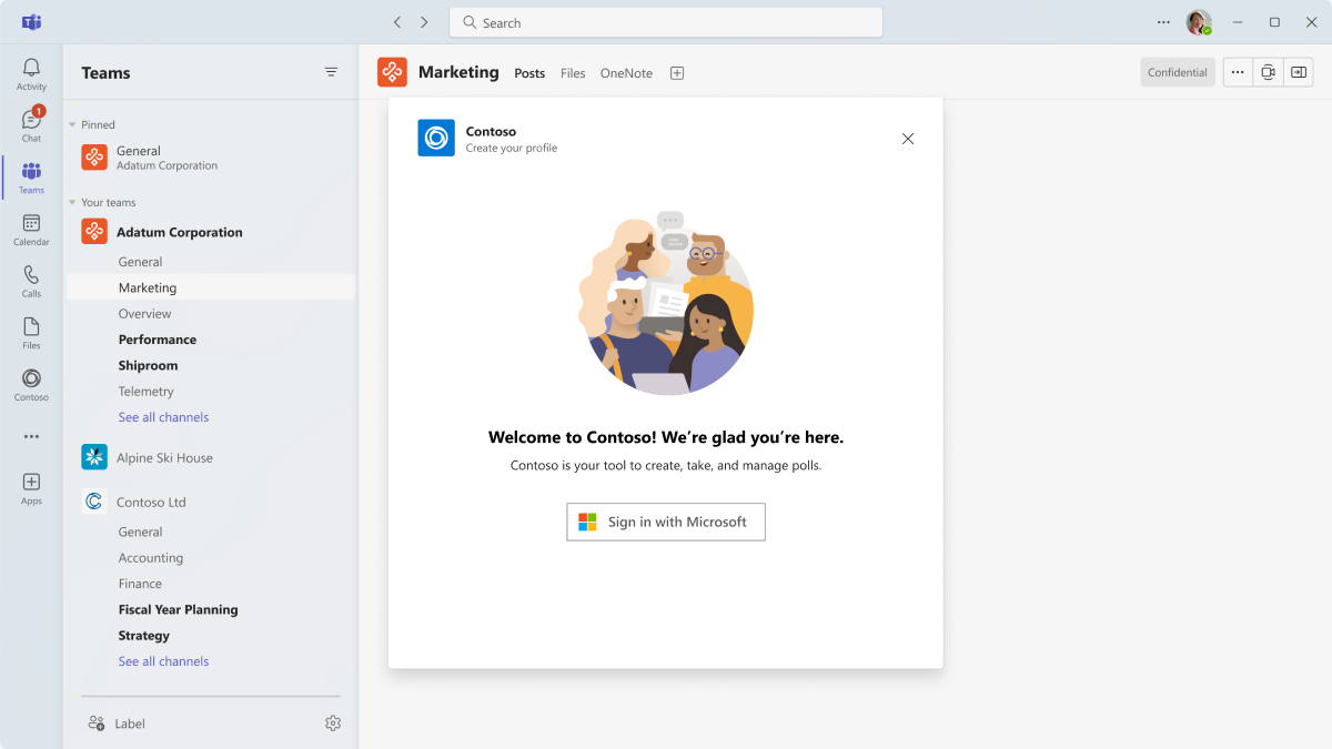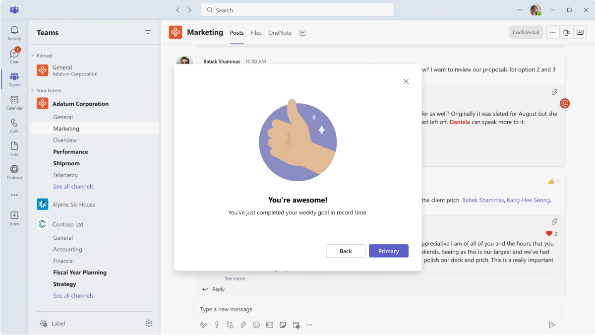 You can create modal pop-up experiences in your Teams app with dialogs (referred as task modules in TeamsJS v1.x). Use this capability to display rich media and information or complete a complex task.