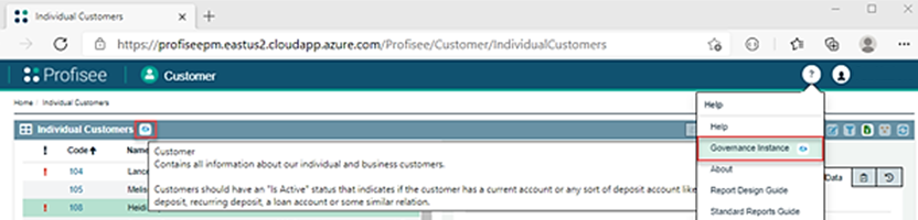 - 거버넌스 세부 정보는 데이터 관리자 및 비즈니스 사용자에게 반환되고 제공됩니다. 이러한 세부 정보는 사용자가 Profisee FastApp 포털을 사용하여 데이터를 보고, 데이터를 보강하고, 데이터 품질 문제를 수정할 때 사용할 수 있습니다.