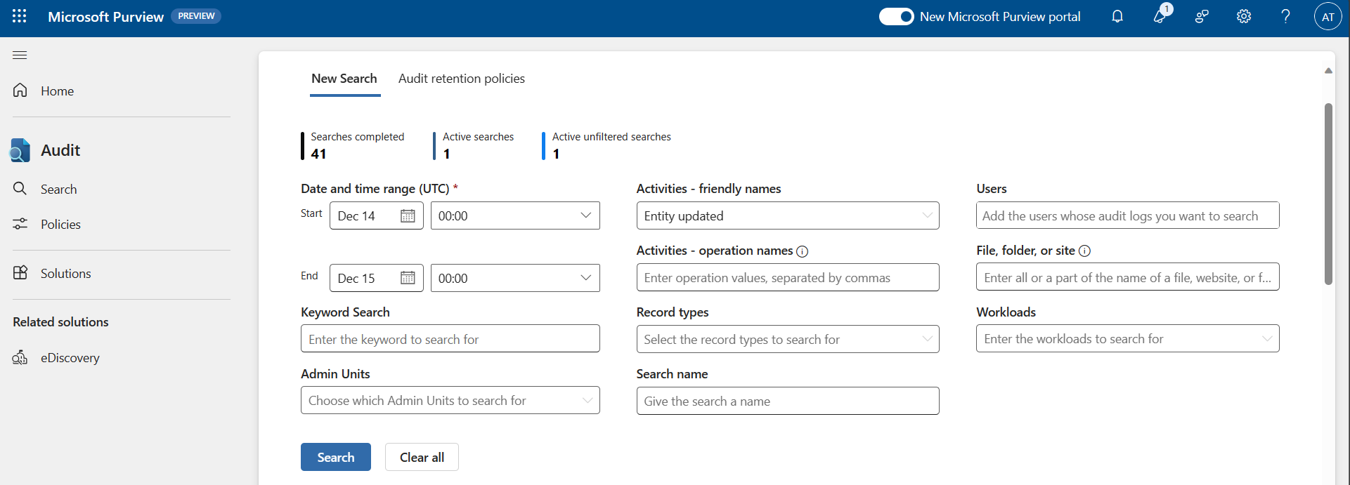 Microsoft Purview 내에서 감사 솔루션으로 이동합니다.