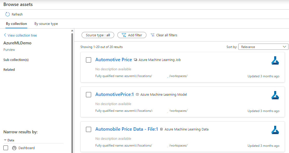 Azure Machine Learning 작업 영역을 등록하면 메타데이터가 매일 Microsoft Purview에 자동으로 푸시됩니다.