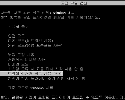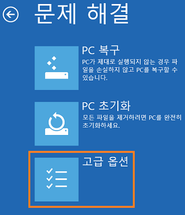 8. 이 후 고급 부팅 옵션이 나타나면, 원하는 항목을 선택 후 Enter키를 누릅니다.