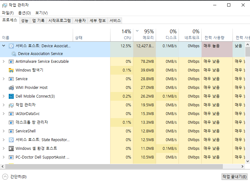 현재 문의주신 서비스 호스트 : Device Association Service는 간략하게 말씀드리자면, Windows내에서 사용되는 디바이스들을 정상적으로 움직이게 도와주는 서비스라고 생각해주시면 되는데요.