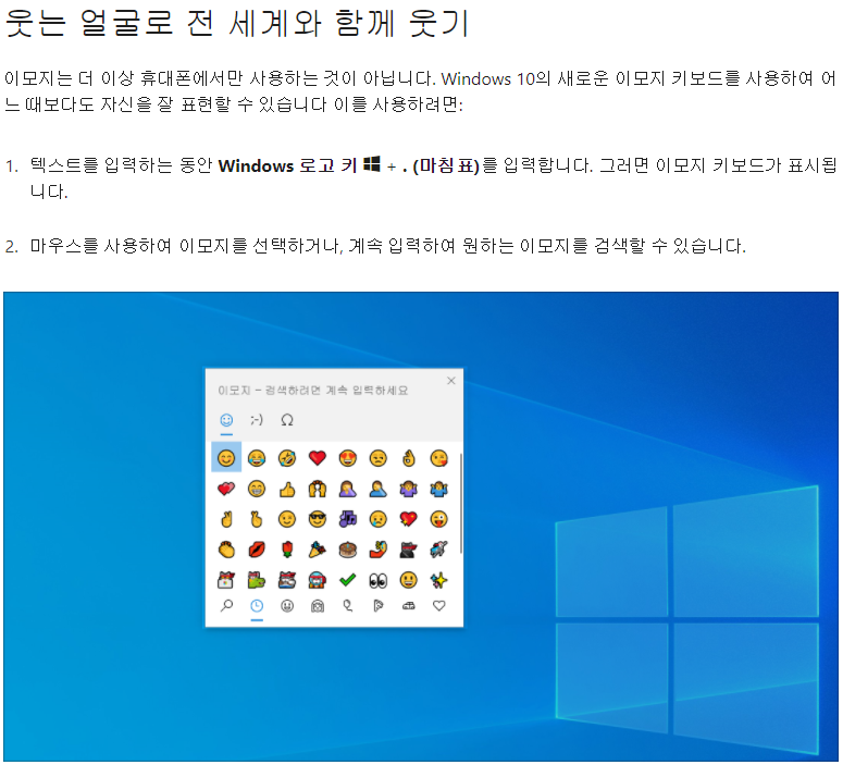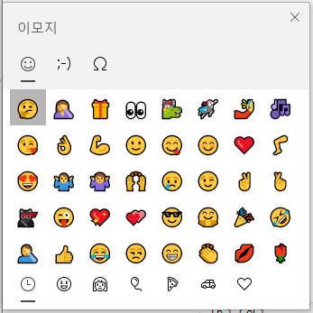 - Windows 로고키와 .키를 눌러 이모지 창에서 검색 창이 활성화 되는지 확인 합니다.