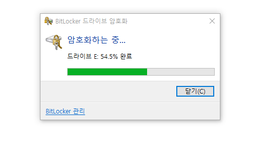'액세스가 거부되었습니다' 하는 문구가 뜨면서 암호화 중이던 창이 사라지고 중단됩니다.