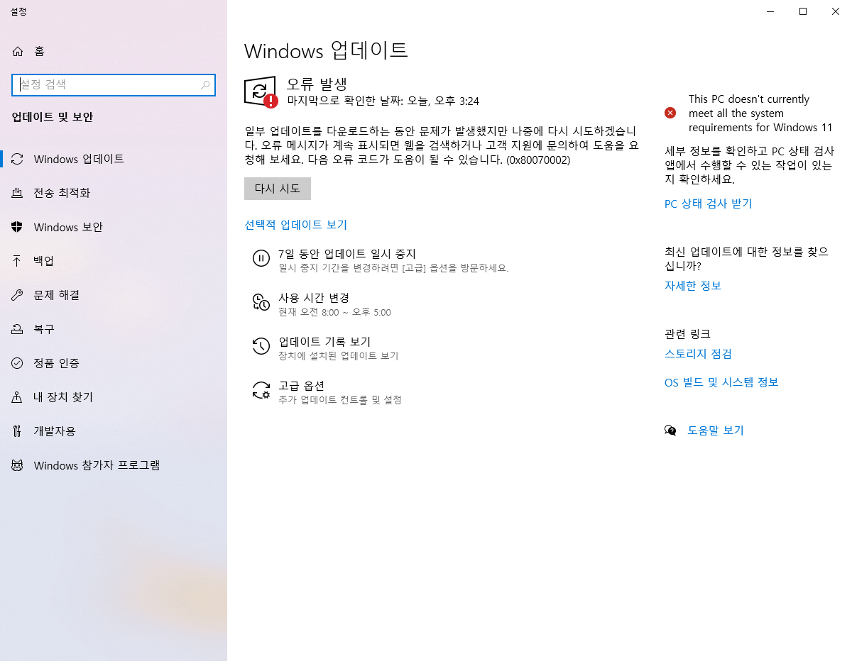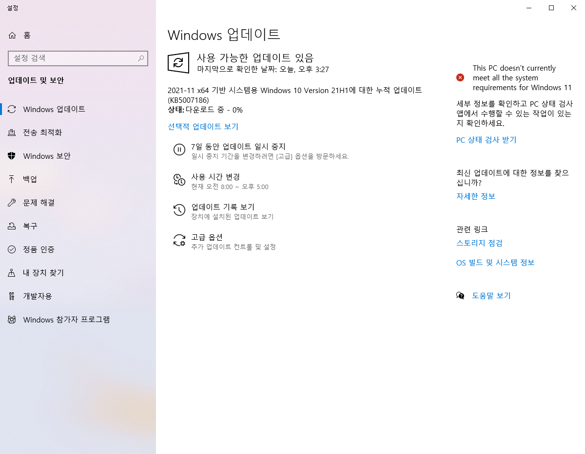 - 업데이트 및 보안 클릭