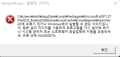 현재 마인 크래프트 게임을 제거하고이 설치 프로그램에서 게임을 설치하십시오 : https://launcher.mojang.com/download/MinecraftI...