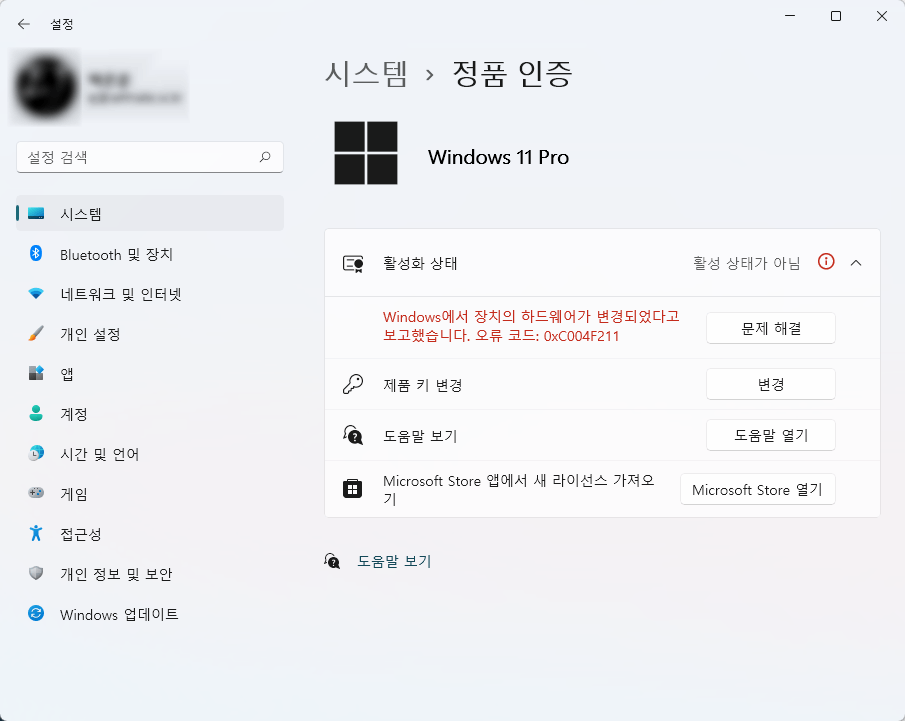 그렇지 않은 경우 지원을 통해 다시 활성화하려면 정품 키가 필요하므로 업그레이드된 이전 OS의 키인 경우에도 설정 > 업데이트 및 보안 > 활성화 > 제품 키 변경에 먼저 삽입해 보십시오.