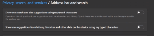 - 드롭다운에서 설정을선택하고 왼쪽 창에서 개인 정보 보호, 검색 및 서비스를클릭 합니다.