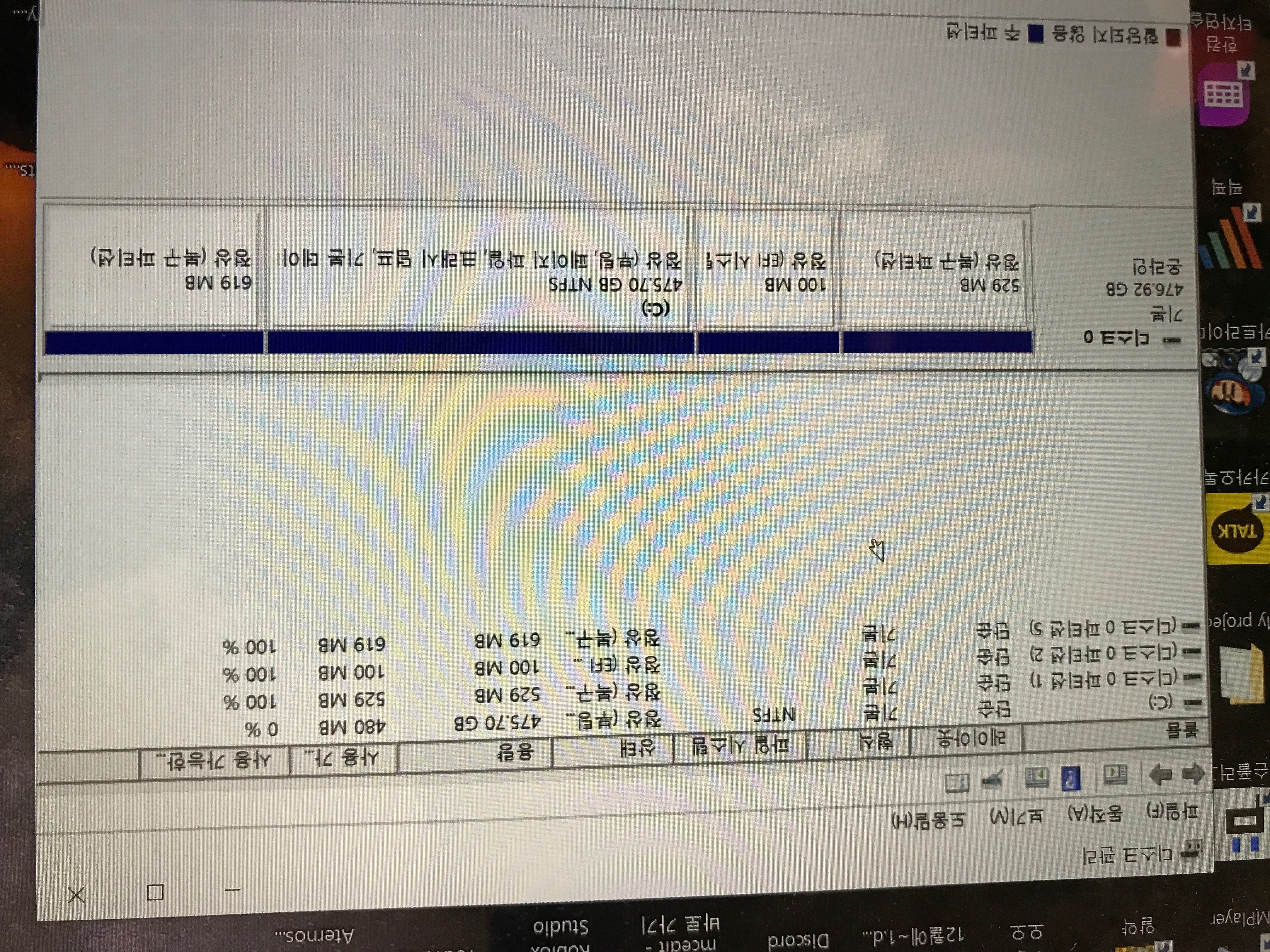 디스크 관리 열기(시작 버튼을 마우스 오른쪽 버튼으로 클릭하면 액세스할 수 있음)는 해당 디스크 관리 창의 스크린샷을 제공하십시오.